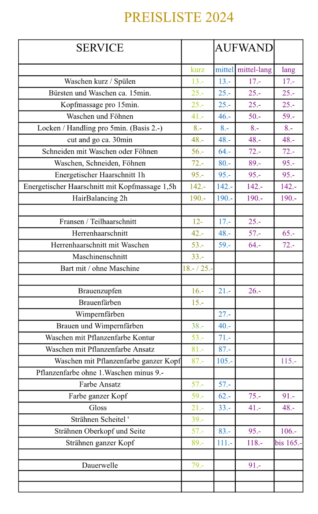 Preise (CHF inkl.MwSt.) richten sich nach Produkteaufwand und Zeit..